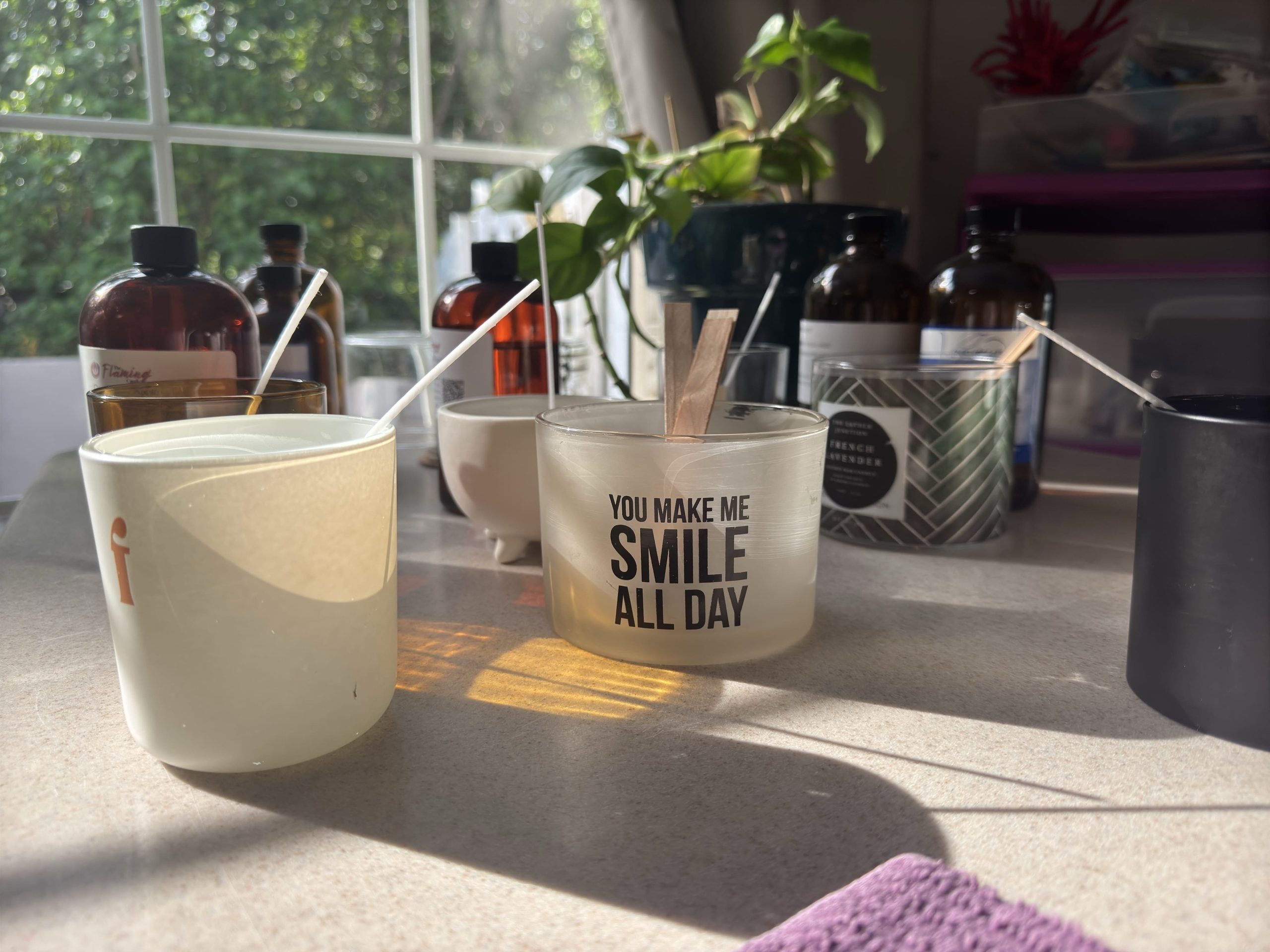 ambience they add to a room, so when I started making my own, I picked beeswax for its clean, natural filtration and burn. Now I use a mix of beeswax and soy, keeping things simple and