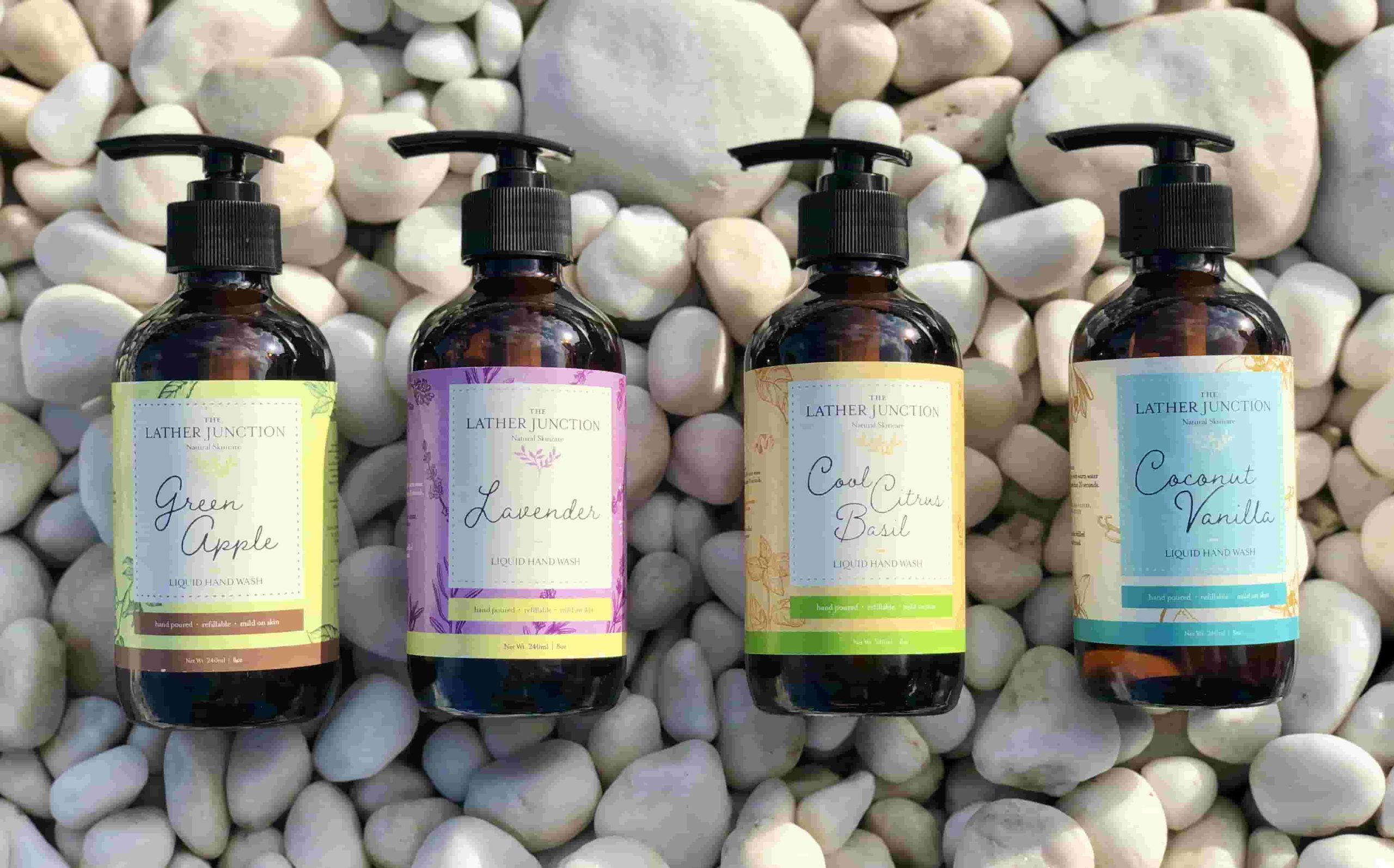 Soap bars and liquid hand wash are formulated using traditional methods and simple, nourishing ingredients. Bar soaps are crafted with rich oils, essential oils, and luxurious butters, while liquid hand wash is blended with gentle enough-for-baby cleansers that are kind to skin.
